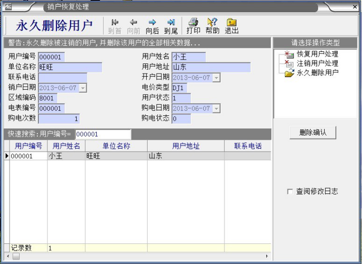 預(yù)付費(fèi)電表系統(tǒng)管理者,在平時(shí)的操作中經(jīng)常會(huì)遇到需要?jiǎng)h除用戶,小編在接下來(lái)通過(guò)圖片和文字詳細(xì)介紹這方面的操作。