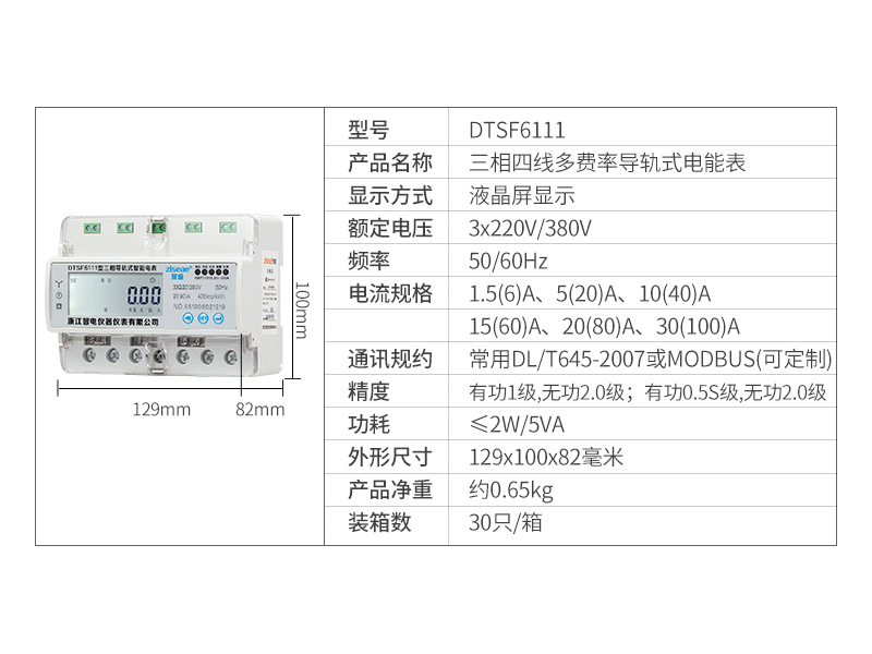 型號:DTSF6111-7三相多費率導軌式電表